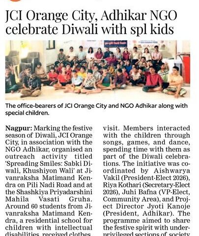 On the joyful occasion of Diwali, ADHIKAR Multipurpose Society, in association with JCI Orange City, organized a special outreach event for children with intellectual disabilities in Nagpur.